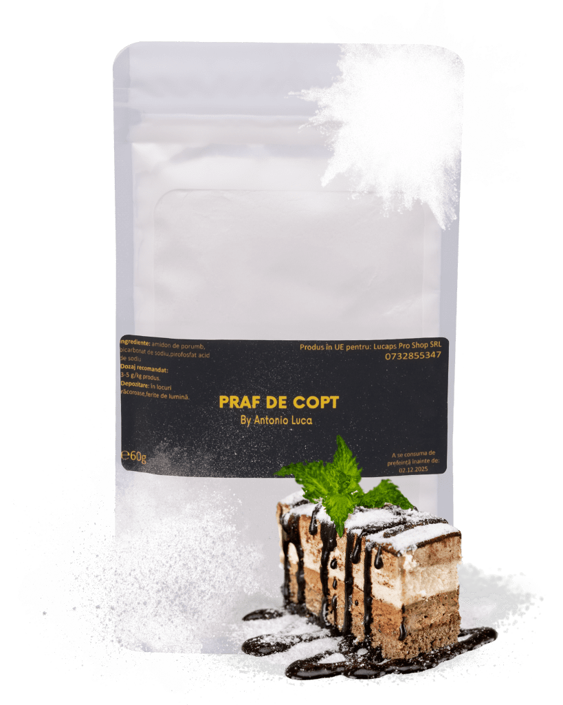 Pentru a completa experiența, am inclus un pachet de praf de copt și un pachet de zahăr vanilinat.